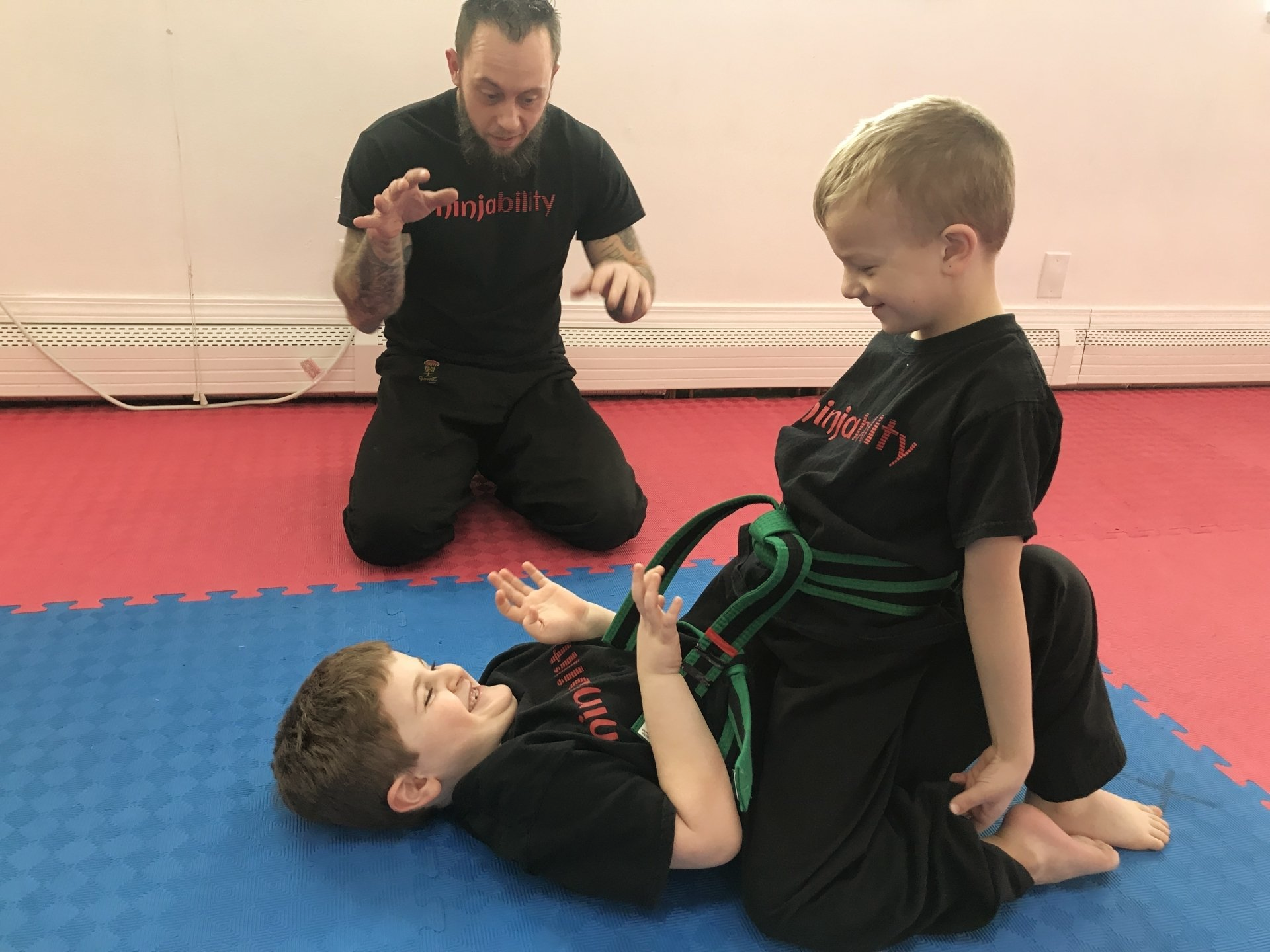 Parents, you've been asking, and we have answered! With the popularity of BJJ (Brazilian JIu jitsu) and even kids' MMA, we have been contemplating introducing our Ninjability™ systems to the world of ground martial arts. However, we wanted to make sure that we could incorporate all the things that have made our classes successful so far: teaching based on developmental stages, as well as introducing character concepts, and most of all, FUN.